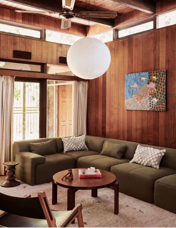 Wood paneling instantly transforms a room into a warm, inviting sanctuary. Mid-century designers loved using natural materials, and paneled walls became a defining feature. If you’re worried about it looking outdated, think sleek vertical or horizontal slats in rich walnut or teak instead of the heavy, dark 1970s look. Use paneling on one accent wall or behind a bed’s headboard for a subtle nod to the era. It adds texture, depth, and character without overwhelming the space, creating a backdrop that makes furniture and décor pop.