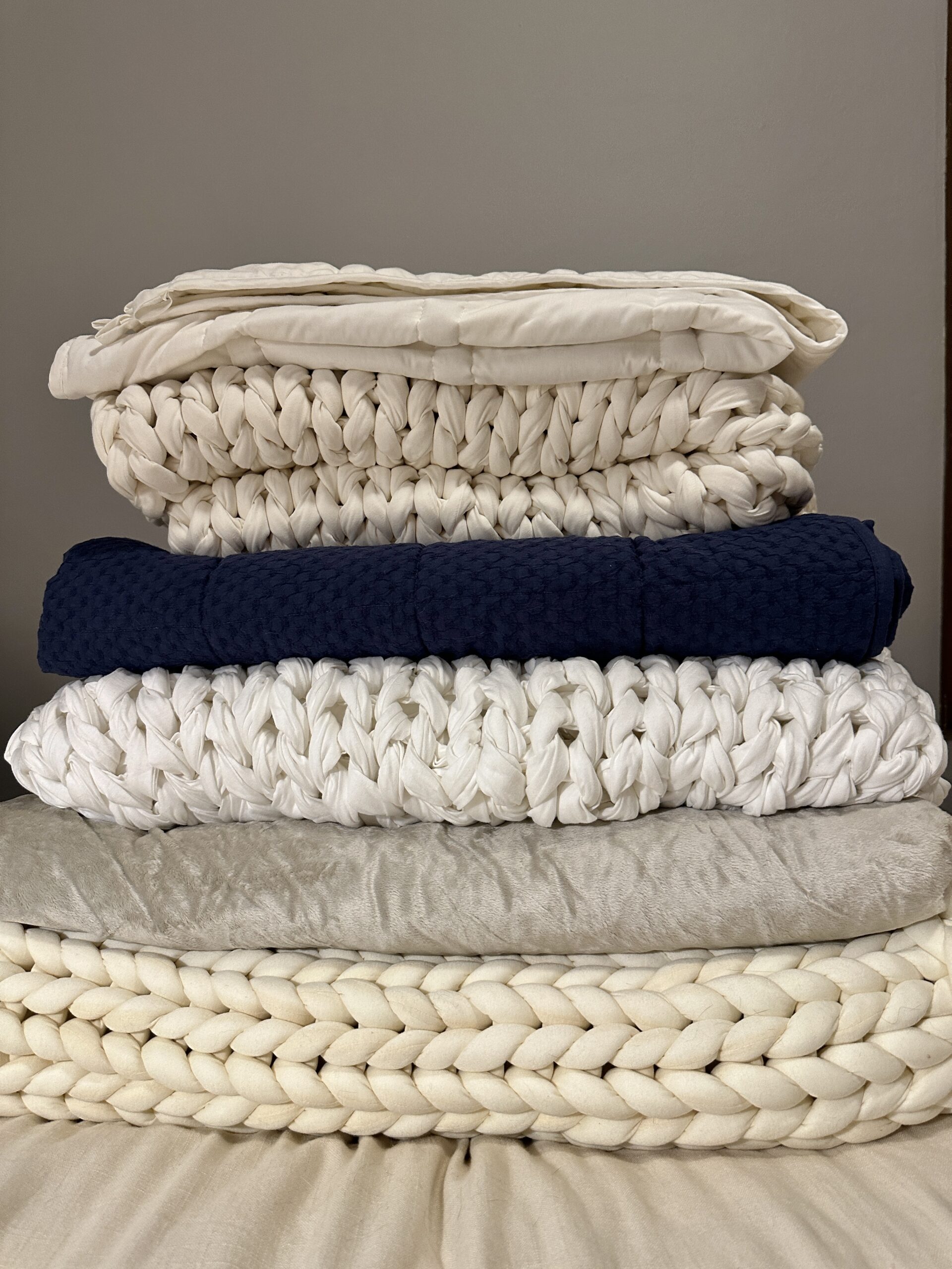 Today, many medical practitioners are suggesting weighted blankets as an effective way to promote rest through the release of serotonin (and its byproduct melatonin), which in turn reduces cortisol levels and leaves us feeling calmer and more content as we try to relax or sleep. Pressure from weighted blankets also puts our autonomic nervous systems into “rest” mode, reducing symptoms of anxiety and lowering our heart rate and breathing. It helps our body feel regulated and calm.