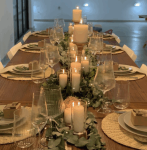 Aromatizadores com notas suaves — como jasmim, flor de laranjeira ou bambu — ajudam a criar uma atmosfera tranquila e acolhedora para receber o novo ano. Velas perfumadas em recipientes elegantes reforçam a sensação de aconchego e, quando combinadas com iluminação indireta, transformam a casa em um espaço de celebração sofisticada. Esses detalhes valorizam a experiência dos convidados e elevam a decoração sem a necessidade de grandes intervenções.