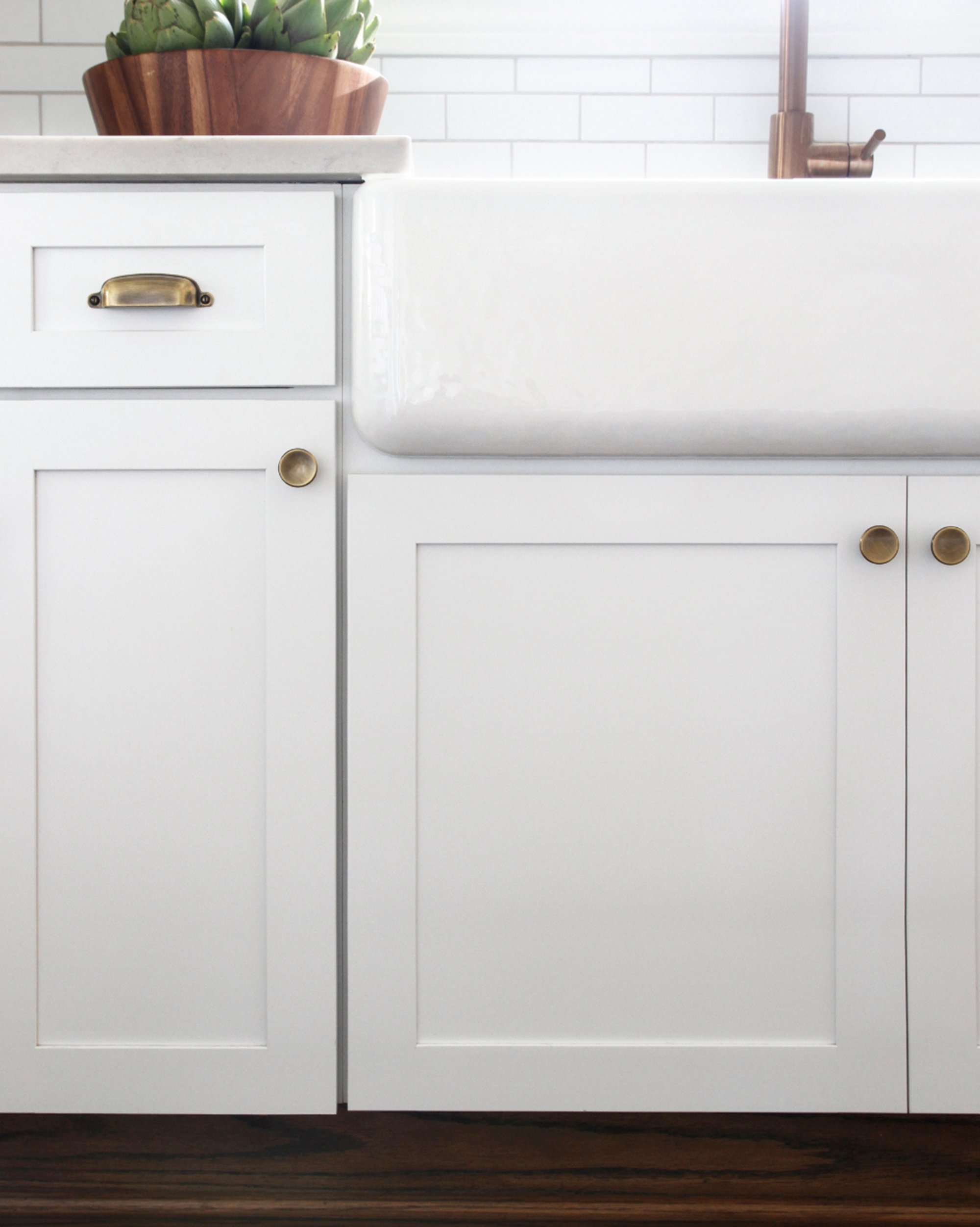 Not all brass cabinet hardware is created equal. There are a lot of cheap looking brass finishes that can quickly date your kitchen. This is what I look for when selecting brass cabinet knobs and pulls…