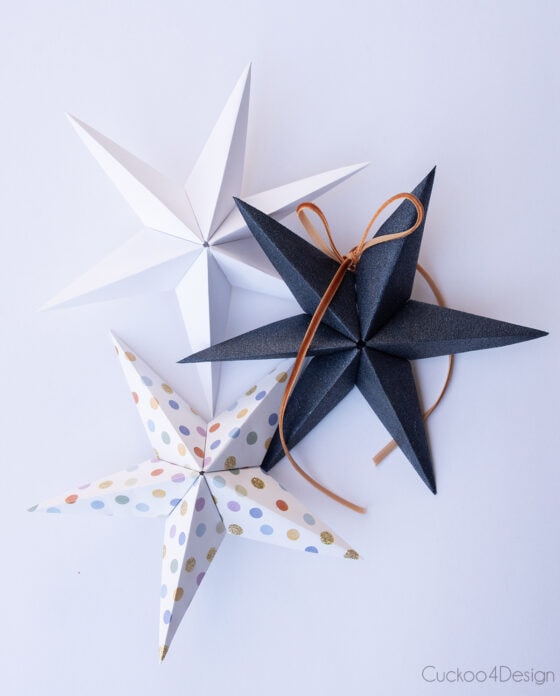 Not a fan of glue? I totally get it! My printable 3D star template creates a similar dimensional look but uses cutting and bending at perforated lines on poster board instead. No adhesive needed! Since I used poster board for those 3D stars, I was also able to spray paint them.