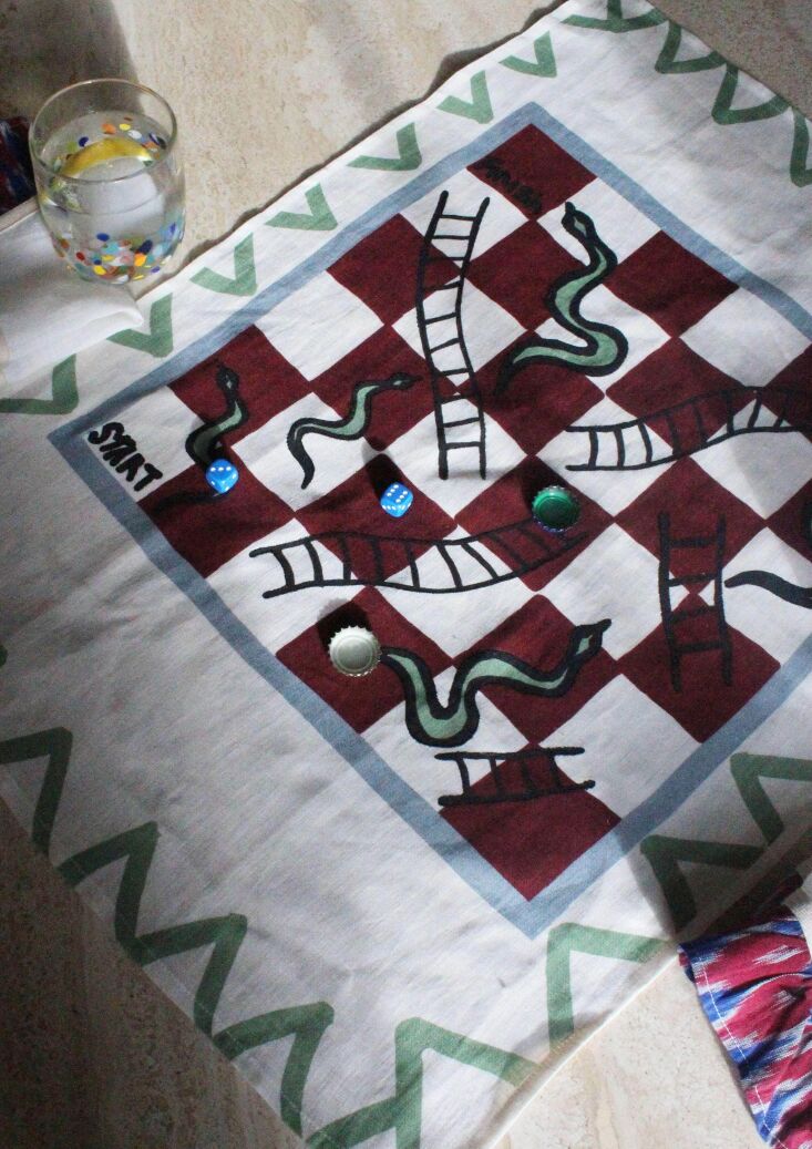 Funny enough, here on the Remodelista team we’ve been noting, with amusement, tablecloths and linens that are primed and ready for just such an occasion. They’re patterned with usable checkers, chess, and backgammon boards, so all you need to do is push aside the dishes and get to playing. (Unless you want to play Clue. There’s not a tablecloth for that yet.)