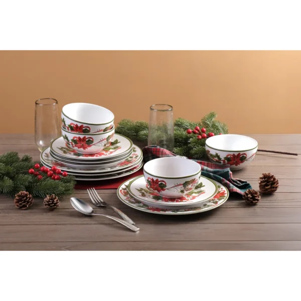 This porcelain set, with its bold red florals and glossy white backdrop, anchors your holiday table. The pattern feels festive without overwhelming the table. Every plate and bowl brings a polished look that works for family dinners and full-house celebrations alike.