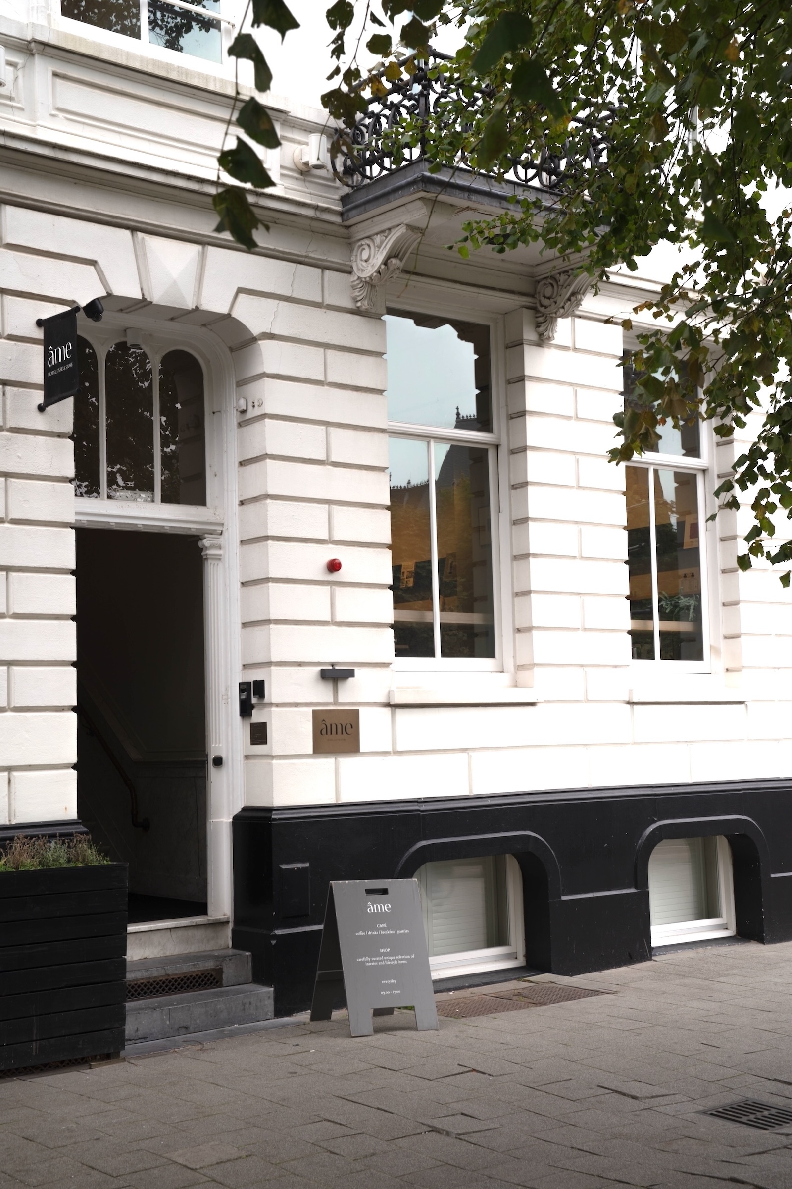 Above: Located on a square in the center of Rotterdam, the five-story neoclassical structure was designed and built as a townhouse by its owner W.A. Merry. Notes Angel: “We kept the original layout and where possible, all the authentic details have been restored.” The hotel’s name means “soul”—Angel and Manfung present it—and the interiors, too—in a lowercased whisper.