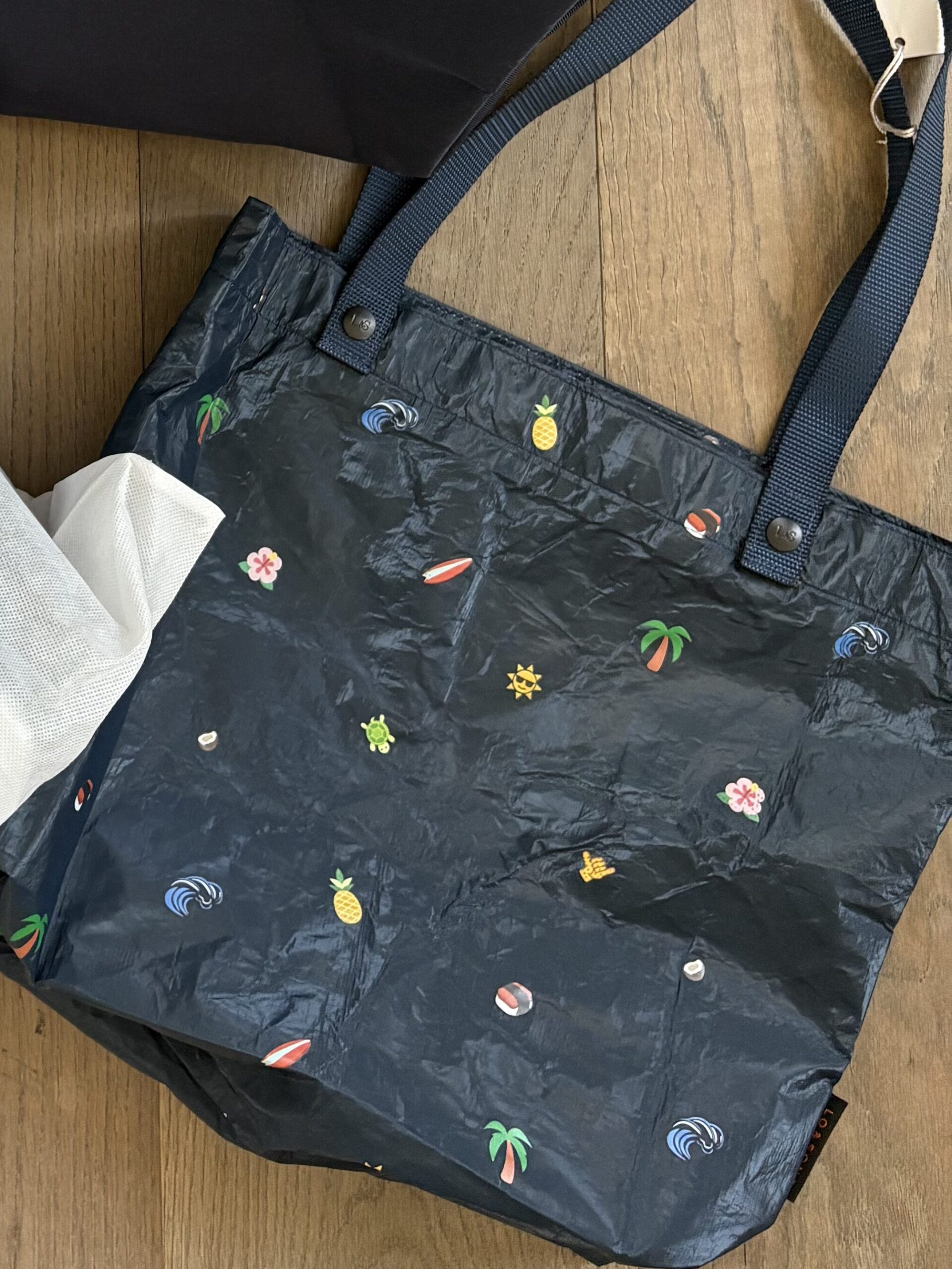 For our trips this summer, I tried three of the company’s bestselling items: The Rowledge 2 Backpack in Deep Navy Exterior/Gold Hardware/Azure Interior, the Catalina Deluxe Weekender in Deep Navy Recycled Poly, and the Del Mar Packable Tote in Navy Hawaii Emoji.