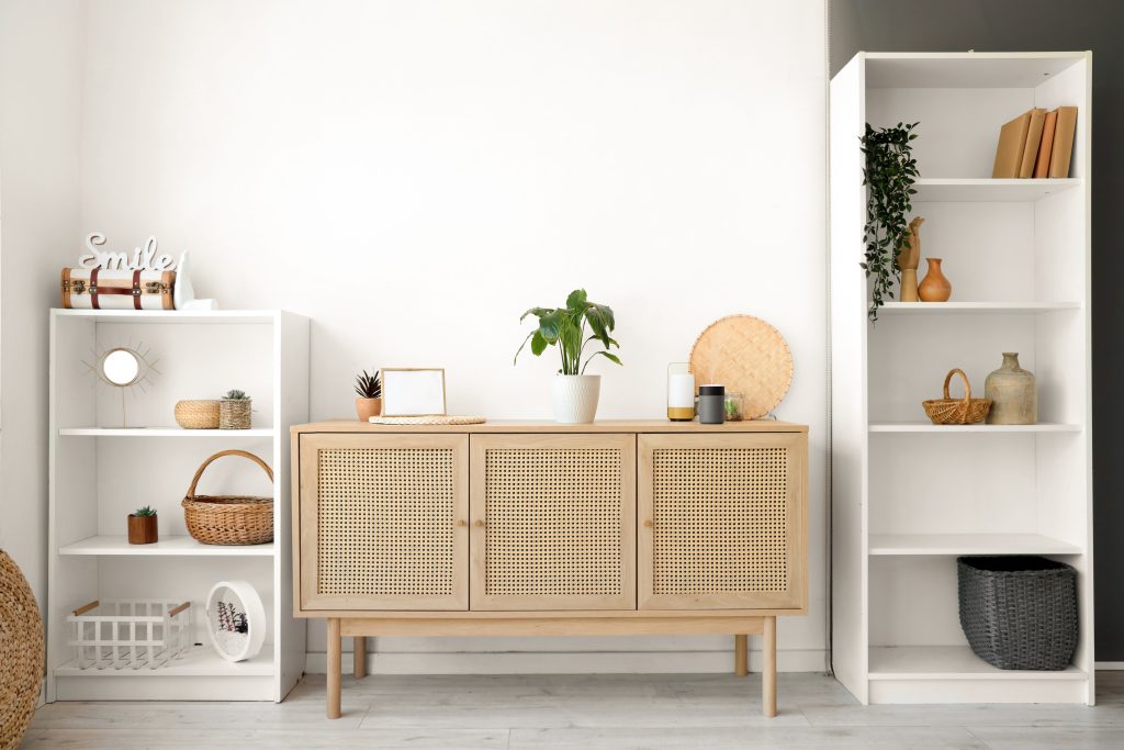 De modo geral, a harmonia visual depende da escolha certa de materiais e cores. Móveis amadeirados pedem mini estantes de madeira clara. Já ambientes neutros ganham vida com peças brancas ou metálicas que contrastam levemente com o restante.