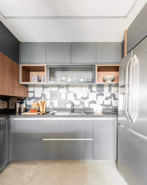 Quando o nicho é pensado para micro-ondas ou forno elétrico, a bancada ganha espaço livre para preparar as refeições. Aí o principal é seguir o manual do aparelho e respeitar as folgas de ventilação, com espaço nas laterais e atrás. Uma distância do fogão ajuda por causa do calor e da gordura.
