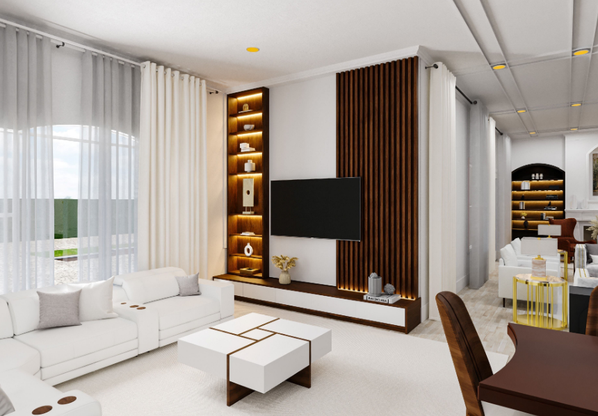 Nichos decorativos dão um toque a mais na sala e deixam a parede mais interessante. Eles ficam bem em dois pontos: na parede do sofá ou integrados ao painel da TV. Perto do sofá, combine nichos com quadros e uma planta para criar uma composição leve. No painel, use para expor objetos e deixar aparelhos e cabos mais discretos.