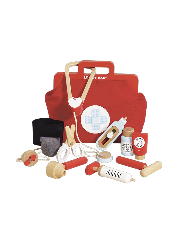 Pretend cleaning gets them geared up for being ready for chores by 5-6 (lol, yeah right). And if you haven’t had a doctor’s exam by a 3-year-old, I highly recommend it – their sense of authority while wearing a stethoscope to listen to your heart is so cute I could cry.