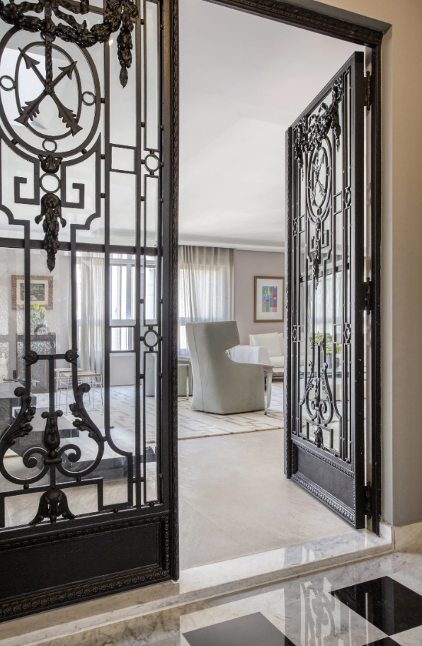 - porta de ferro com arabescos: possui curvas e detalhes decorativos que combinam com ambientes clássicos e sofisticados;