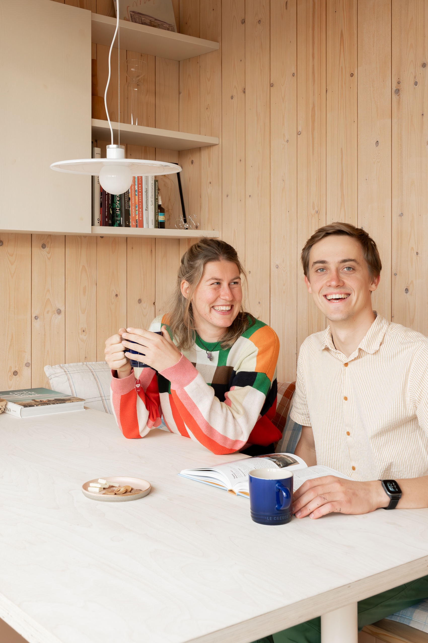 For a year and a half, Aron de Jong and Irene Bijman devoted every weekend and many week nights, too, to working on their little house in the north of the Netherlands. They met as university students—Aron, 27, is a product designer and Irene, 26, is a psychomotor therapist—and couple dreamed of owning their own place. An old farm worker’s bungalow fit the bill: sized for two (just under 700 square feet), it came with a charming two-toned brick façade and postage-stamp gardens in front and back—and was so completely run-down, they were able to snap it up.