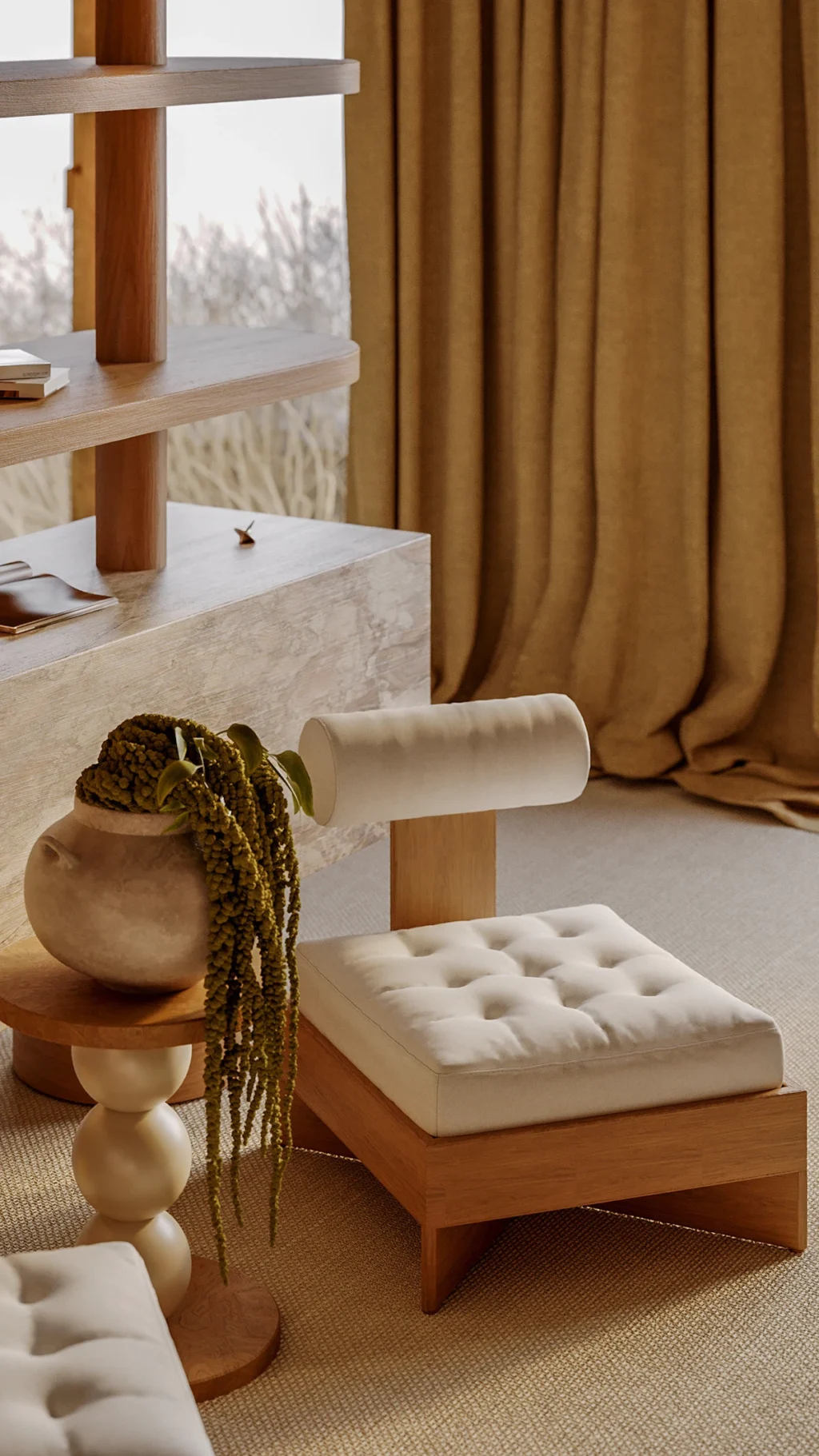 This area works as a pause within the home. A place to sit, read, or slow down. Modern in spirit, but warm in execution.