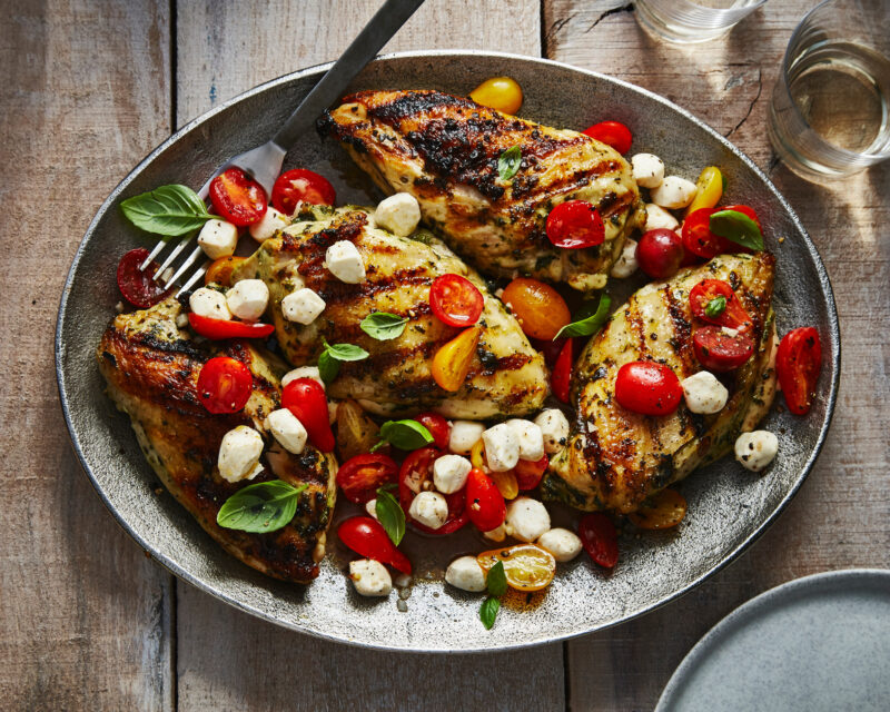 You’ll love the classic Italian flavors of this grilled chicken, and the caprese salsa with sweet, tart grape and cherry tomatoes is the perfect accompaniment to the charred flavor from the grill.