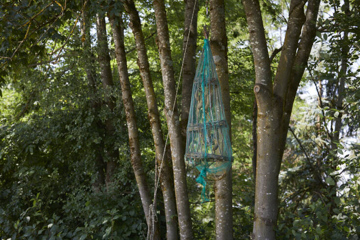 Above: Ferns and wild strawberries grow in polytunnels that are covered in vines for shade.