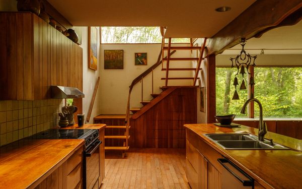 The home was built in collaboration with woodworker Horace Hartshaw, who was an apprentice to Wharton Esherick, one of America’s most iconic craftsman.